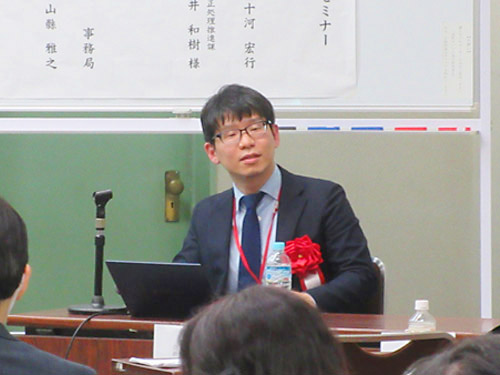 講演は環境省の工藤喜史課長補佐から廃棄物の適正処理を中心に、環境基本計画や循環計画などの概要、プラスチック循環資源、災害廃棄物といった大きく4項目について約1時間にわたり説明がされ、終盤には平成28年9月に答申された「食品循環資源の再整利用等の促進に関する食品関連事業者の判断の基準となるべき事項の改定について」を取り上げ、規制権限の及ばない第三者や排出事業者責任の希薄化の問題についも話されました。